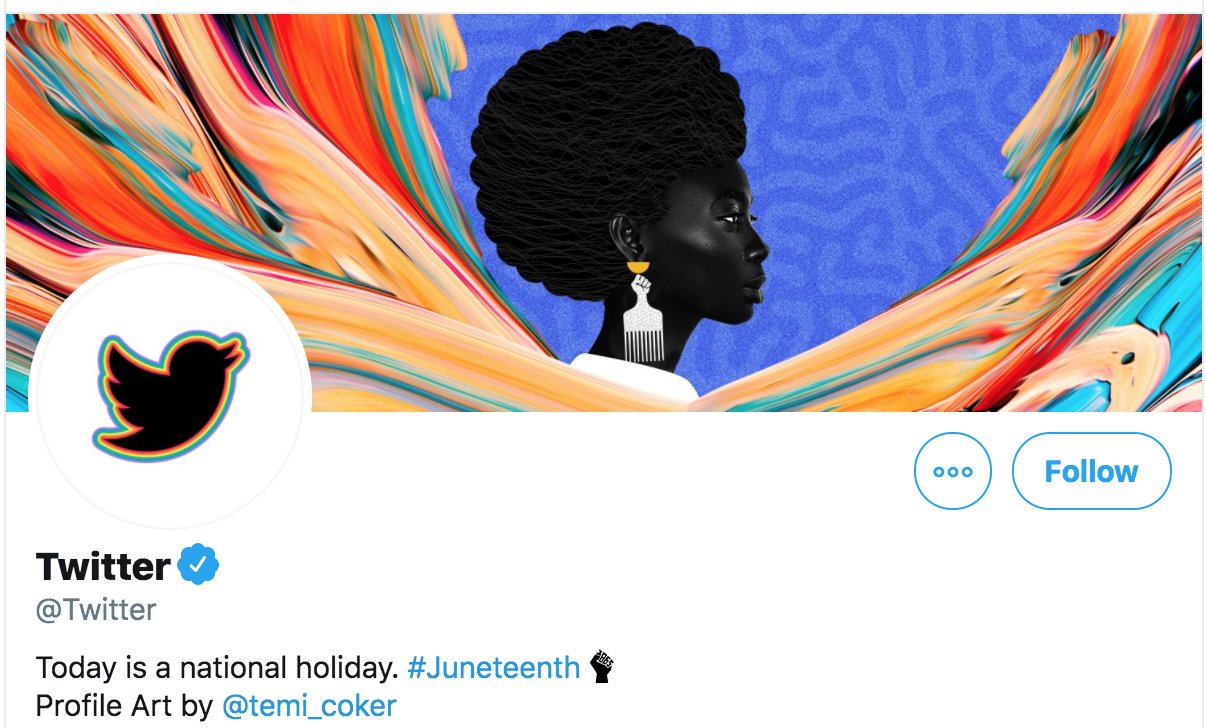 For Juneteenth, I was comissioned by Twitter to create original Art work for their banner to celebrate Juneteenth. I wanted to make sure that my artwork reflected the beauty In our skin as well as our reseliance to continue to fight against the injustice happening to us in America.